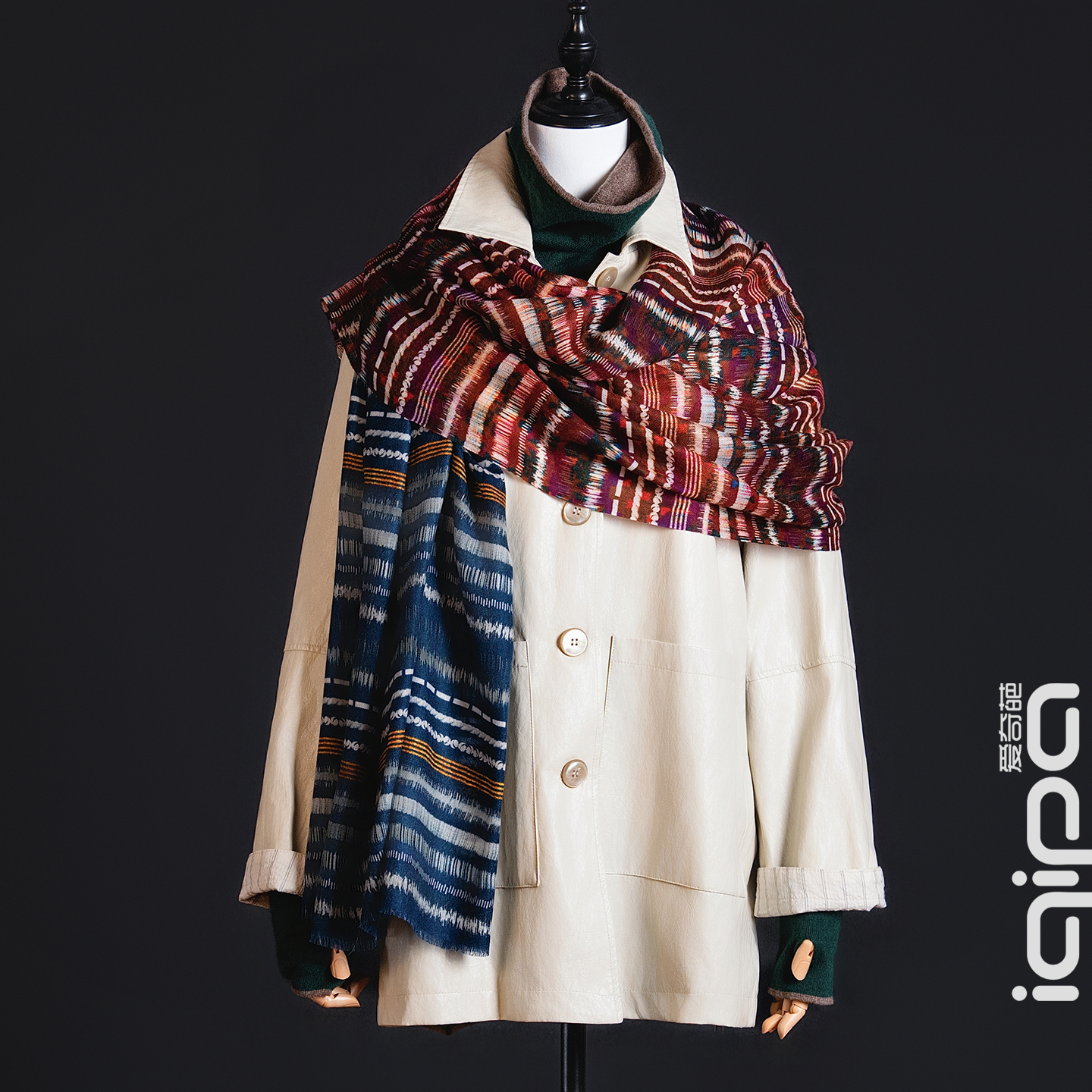 当经纬交织出 “双色并置” 的纹路,这条名为 “双色告白” 的丝巾,便成了东方 “和而不同” 哲思的具象载体。它以竖条纹作平仄诗行:一侧是靛蓝如砚的理性沉静,如宋瓷釉色里藏着的克制;一侧是红棕似笺的浪漫炽热,像古籍朱批间跃动的情长。两种质地、两般色调,恰如人…