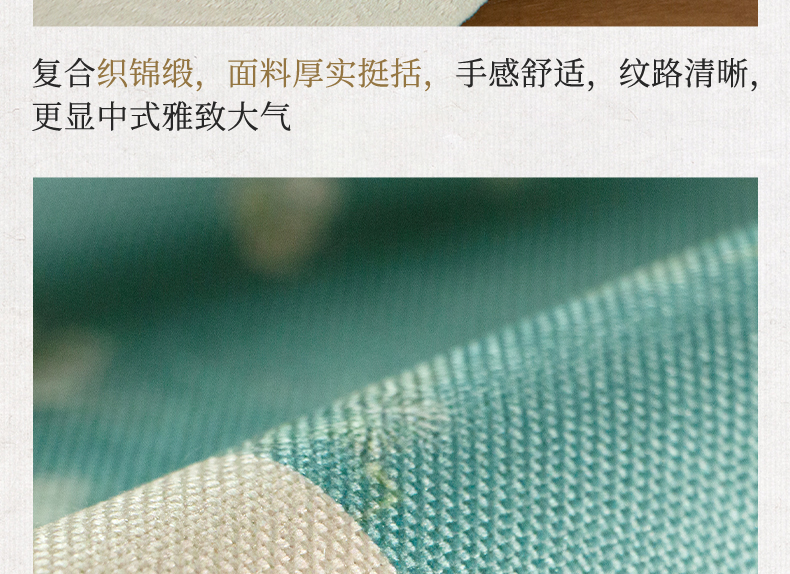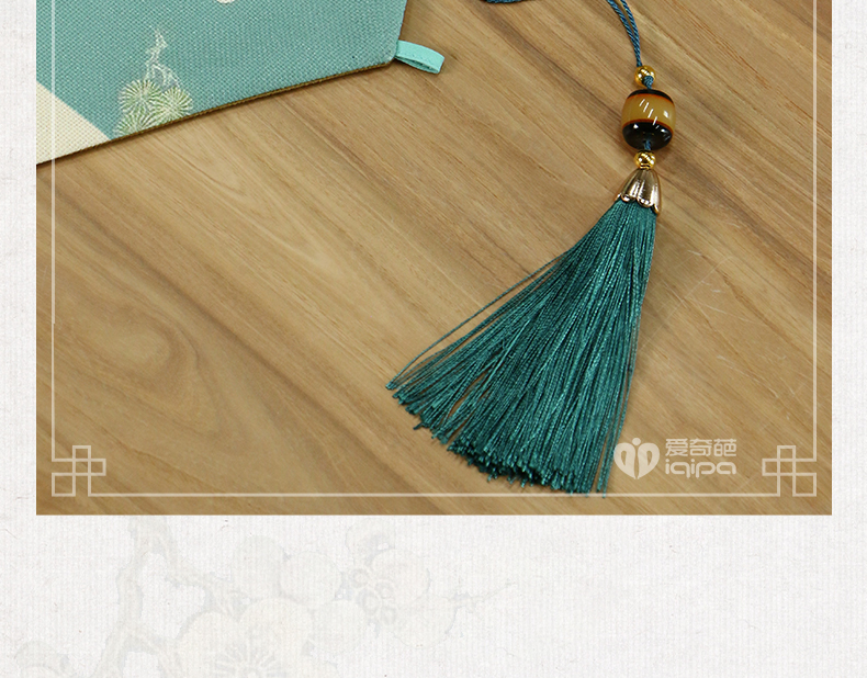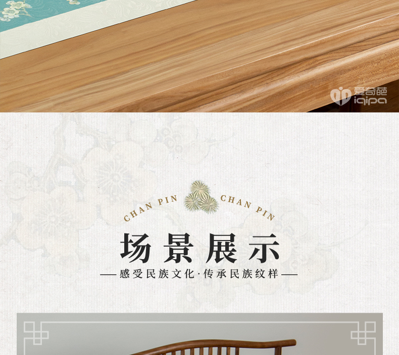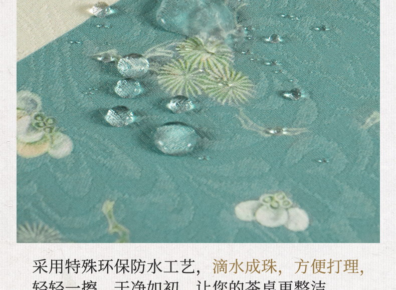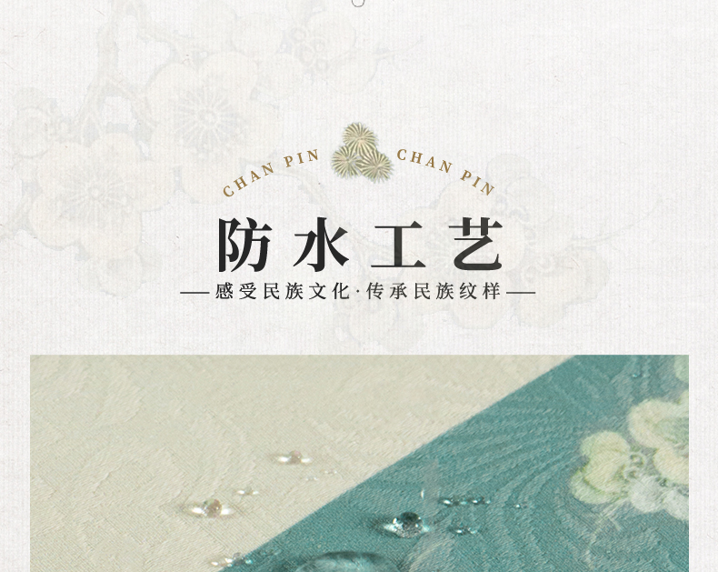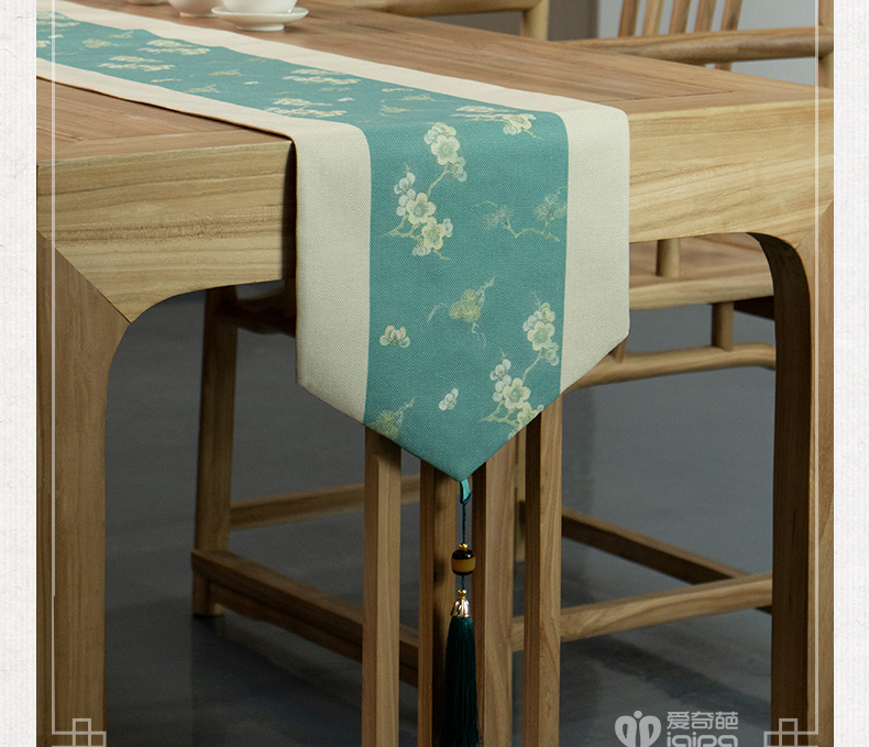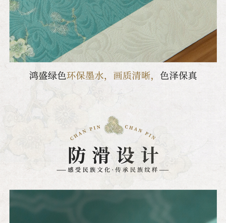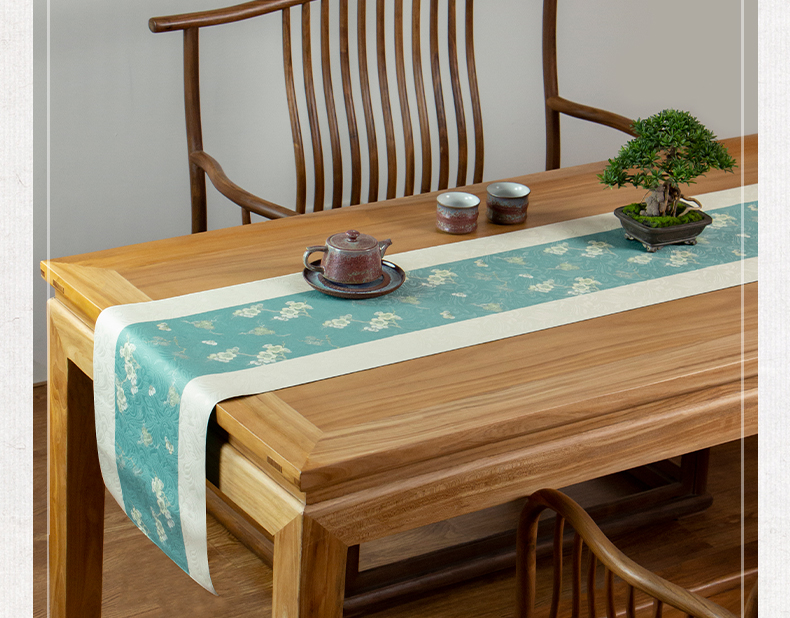 爱奇葩开发的松梅纹茶席,采用织锦缎提花面料,背面复合毛绒材质,能够有效做到防水防滑。