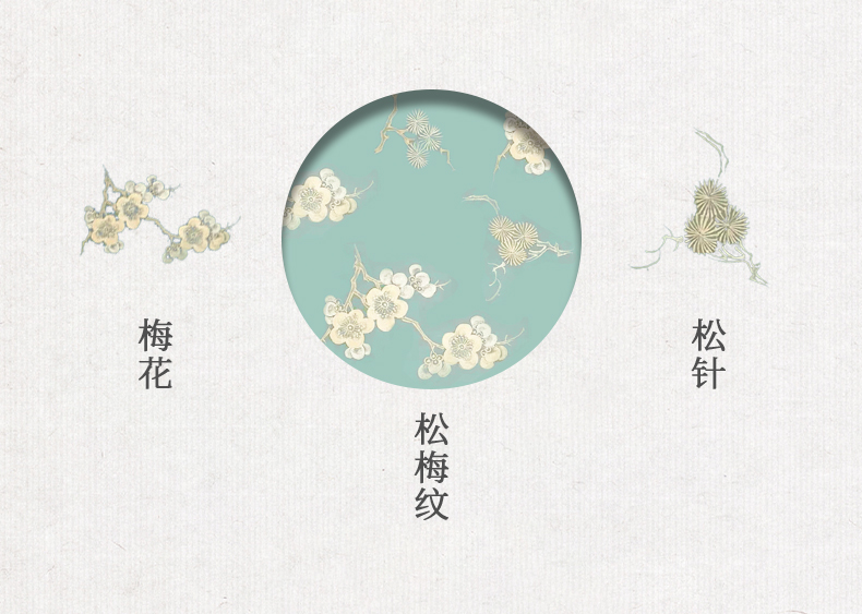 花纹以松梅为主体,相互映衬,用笔自然生动,笔墨酣畅淋漓,结构疏密有致。