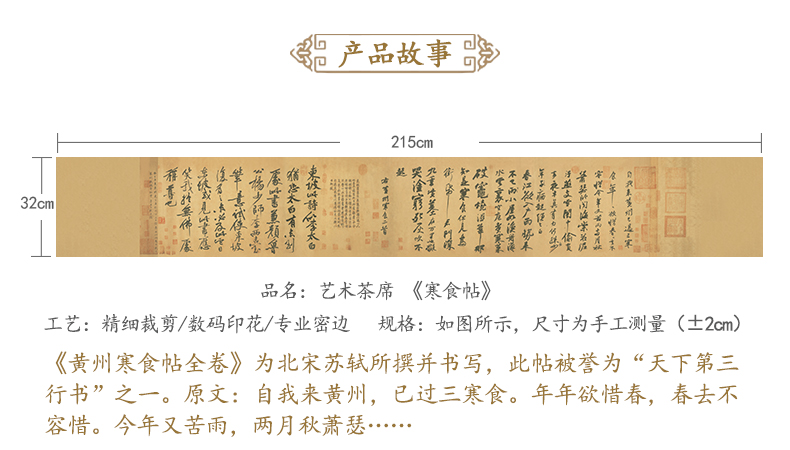 寒食节时,文人们或思乡念亲,或借景生情,感慨尤多,灵感顿生,诗兴大发,咏者甚多。其中最有名的当属苏轼的《寒食帖》了,这幅被称为“天下三大行书”之一的书法作品,揭示了千古文豪苏轼被贬黄州第三年寒食节的独特心境和人生况味。