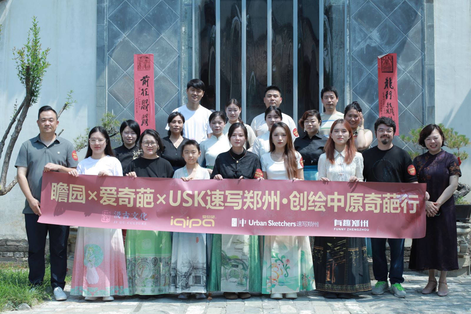 6月29日,由爱奇葩主办、汲古瞻园承办、USK速写郑州协办的第一届创绘中原奇葩行收官仪式举行。此前,来自“USK速写郑州”的画家和画友们,齐聚汲古瞻园,开展了一场以马面裙图案创作为主题的手绘写生活动。画作经由爱奇葩衣稿设计与生产,制作成了一件件专属于画家本人的马面裙,赠予作者。收官仪式现场,爱奇葩总经理赵帅和瞻园总经理李阿娟为大家分发专属马面裙并合影留恋。
