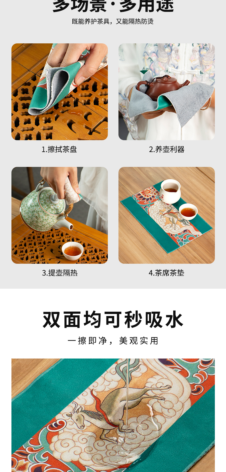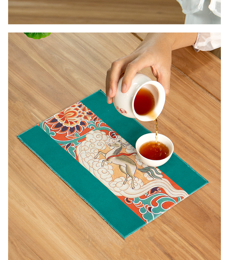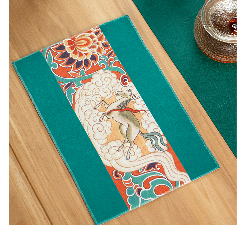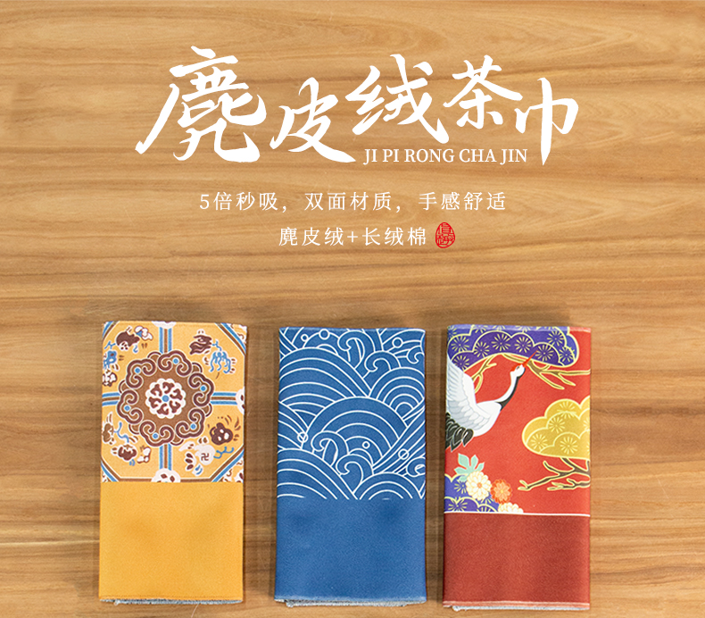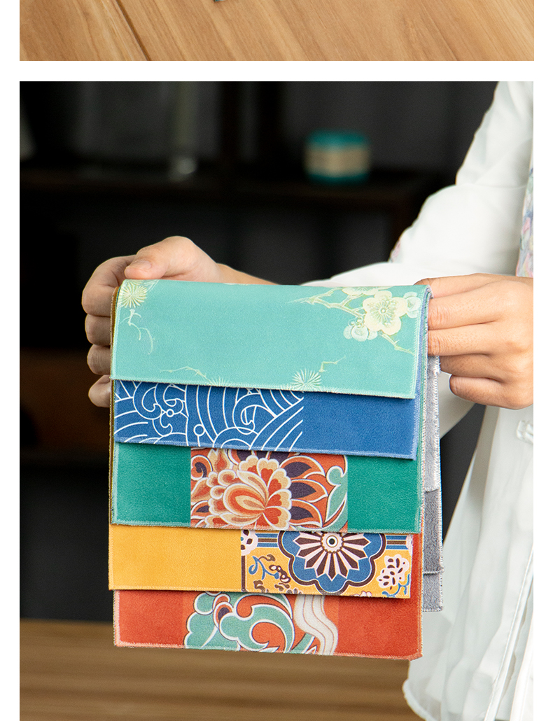 名称:传统纹样麂皮绒茶巾