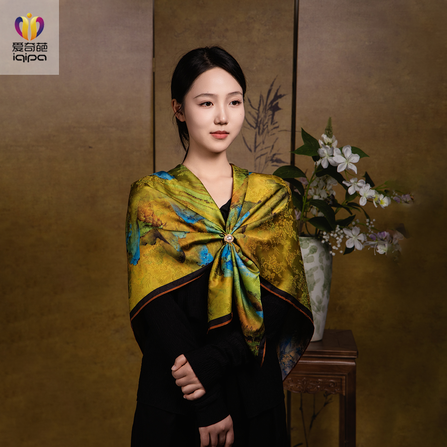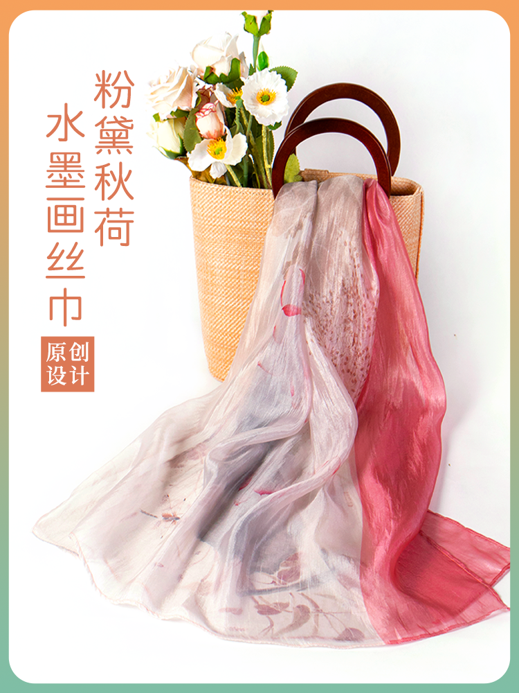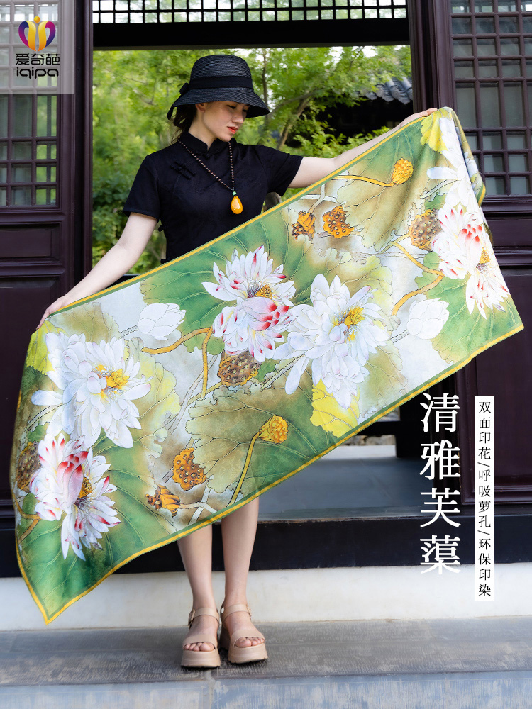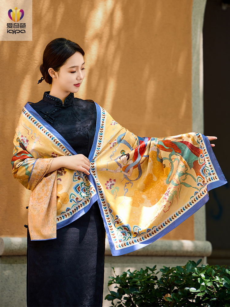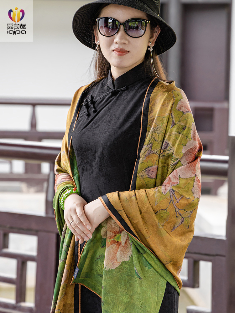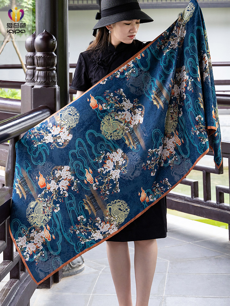千里江山图牡丹锦花萝丝巾