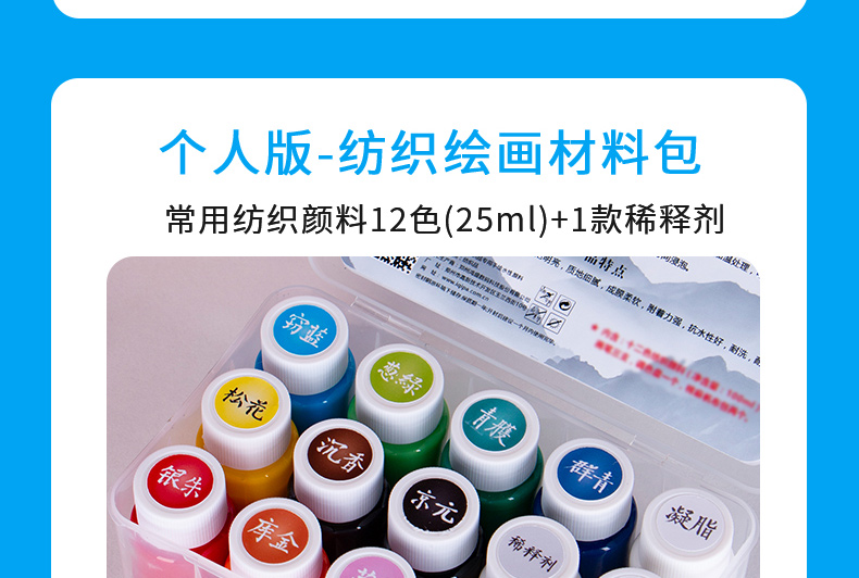名称:中国传统色•纺织品专用DIY手绘颜料包